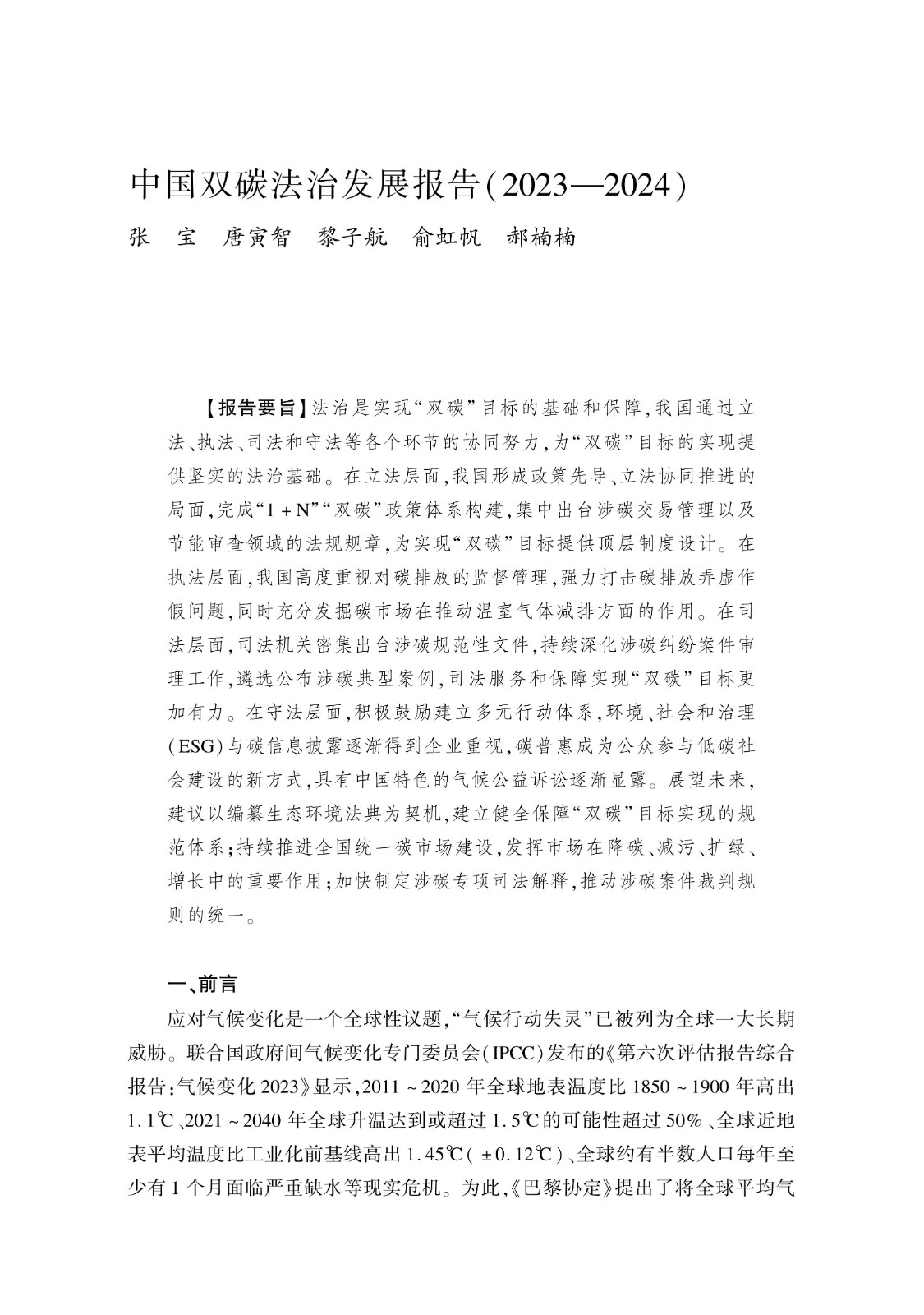 中国双碳法治发展报告(2023-2024)总报告